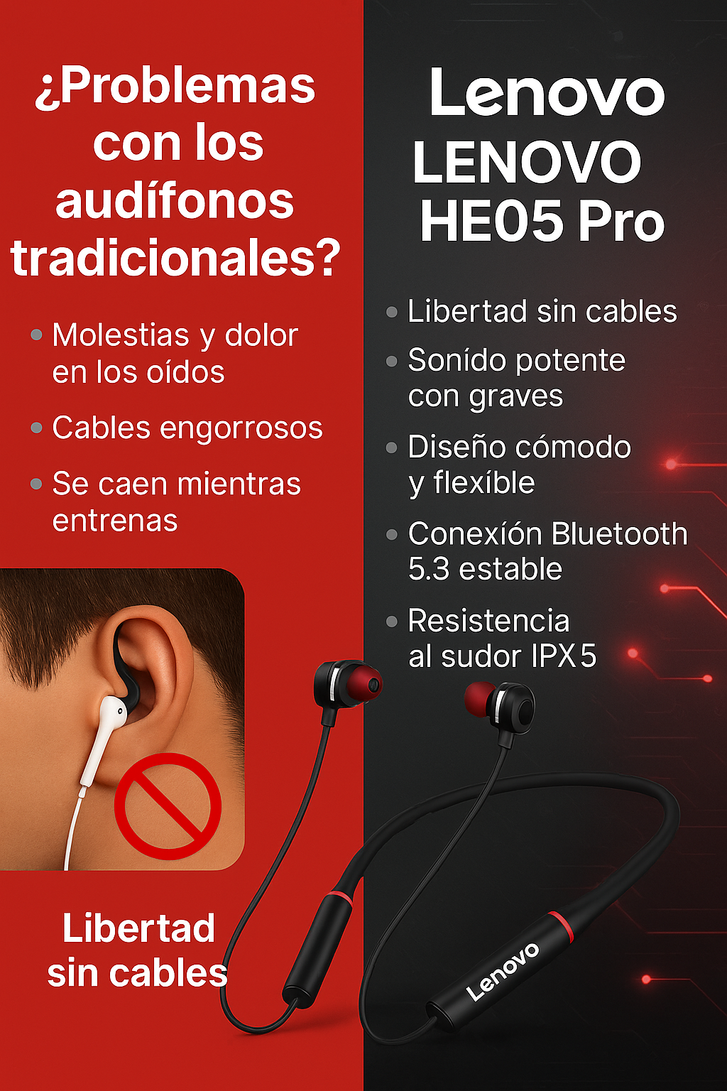 Auriculares Deportivos Inalámbricos Lenovo HE05 PRO