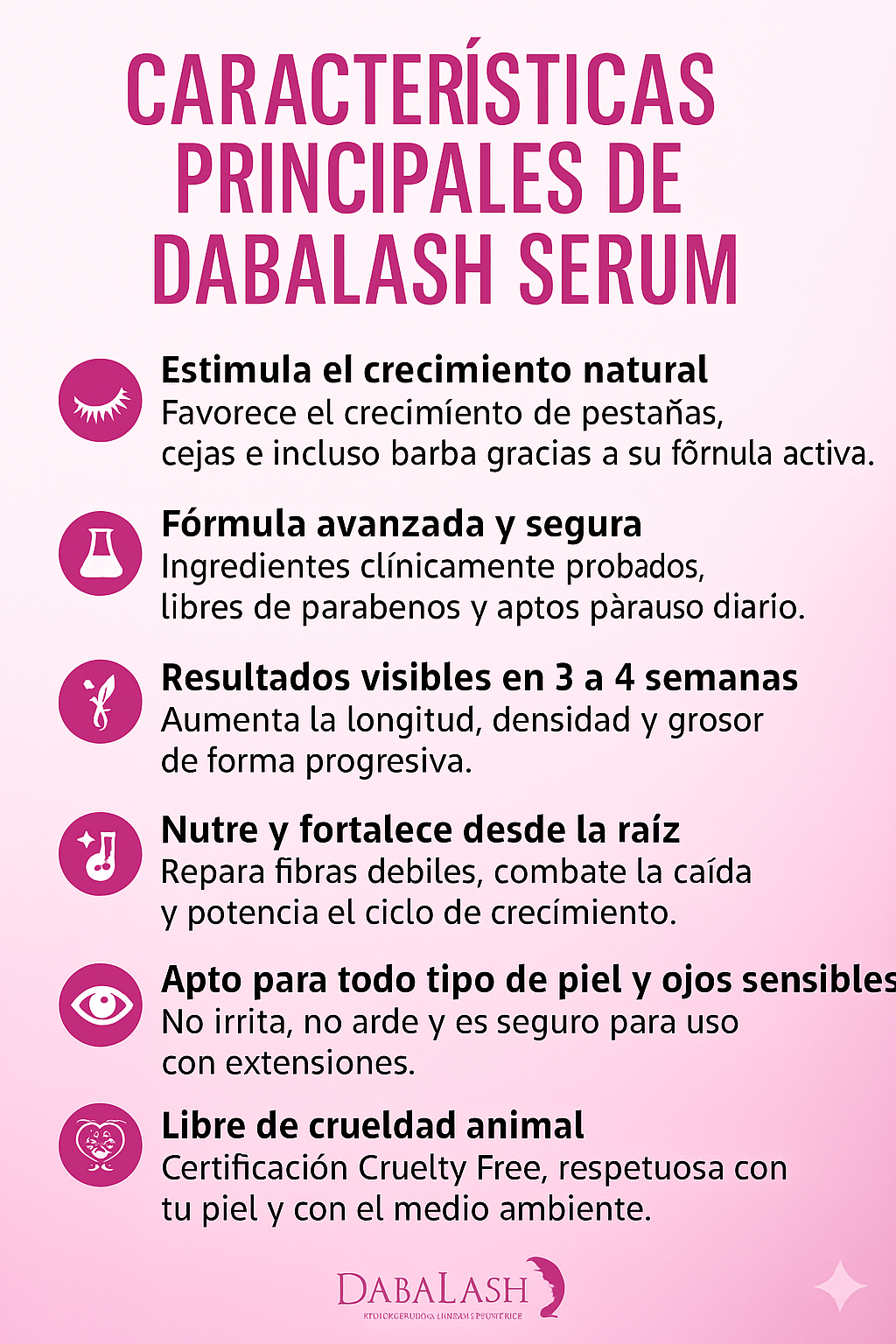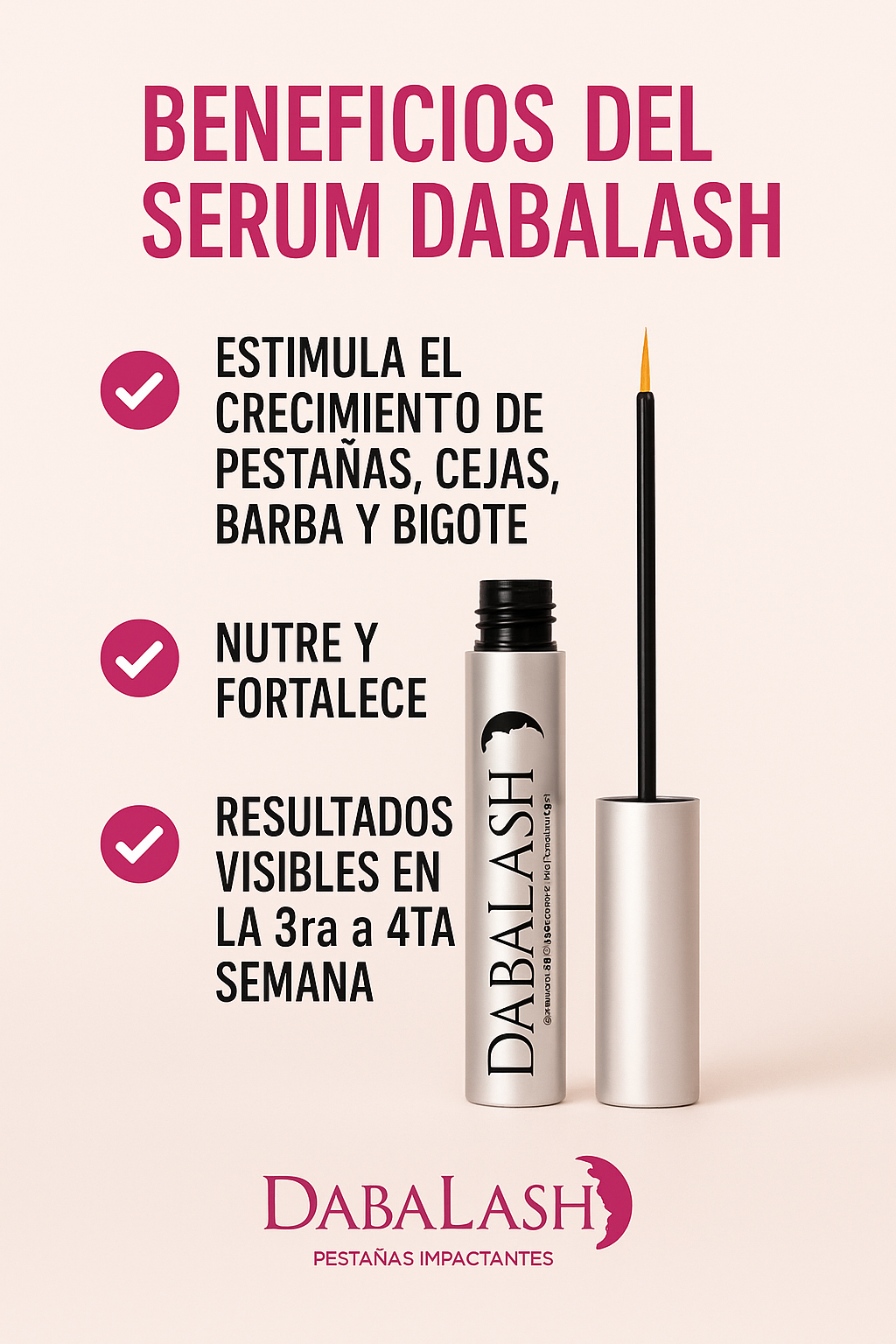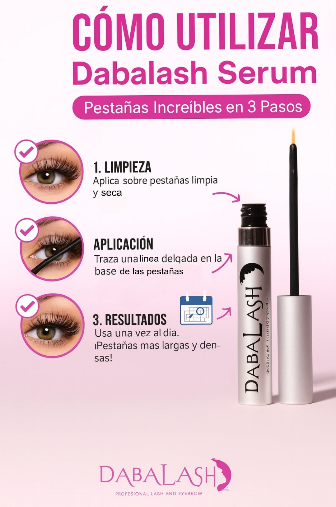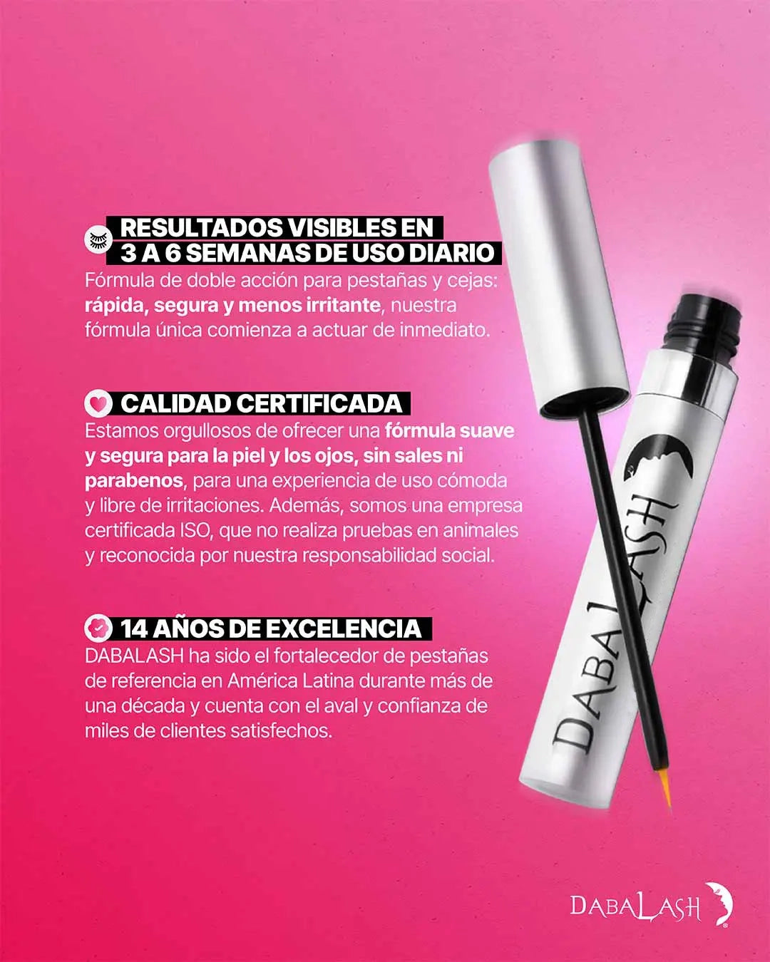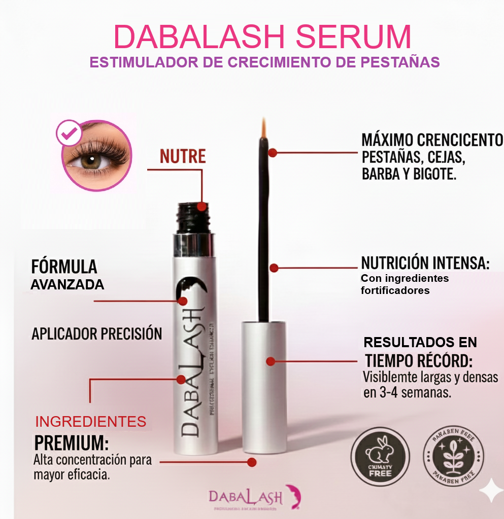 Con solo unas semanas de uso, Dabalash transforma tus pestañas: más largas, fuertes y naturales, sin extensiones ni máscaras.